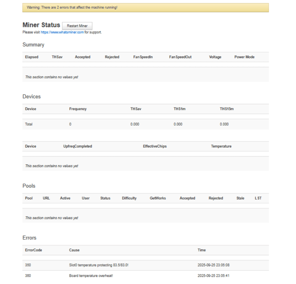 09-25 23:05:08.78 E btminer[4014]: Code<error>[350]: Slot0 temperature protecting 83.5/83.0!