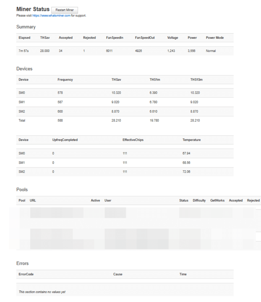 When a Whatsminer M50 encounters a 350 or 360 error, it may continue hashing but will repeatedly restart due to the overheating error. This cycle generates more heat, stressing the chips and risking serious damage. If left unaddressed, the M50 350 error could lead to repair costs of several hundred dollars. Catching it early, however, can save you from expensive fixes.