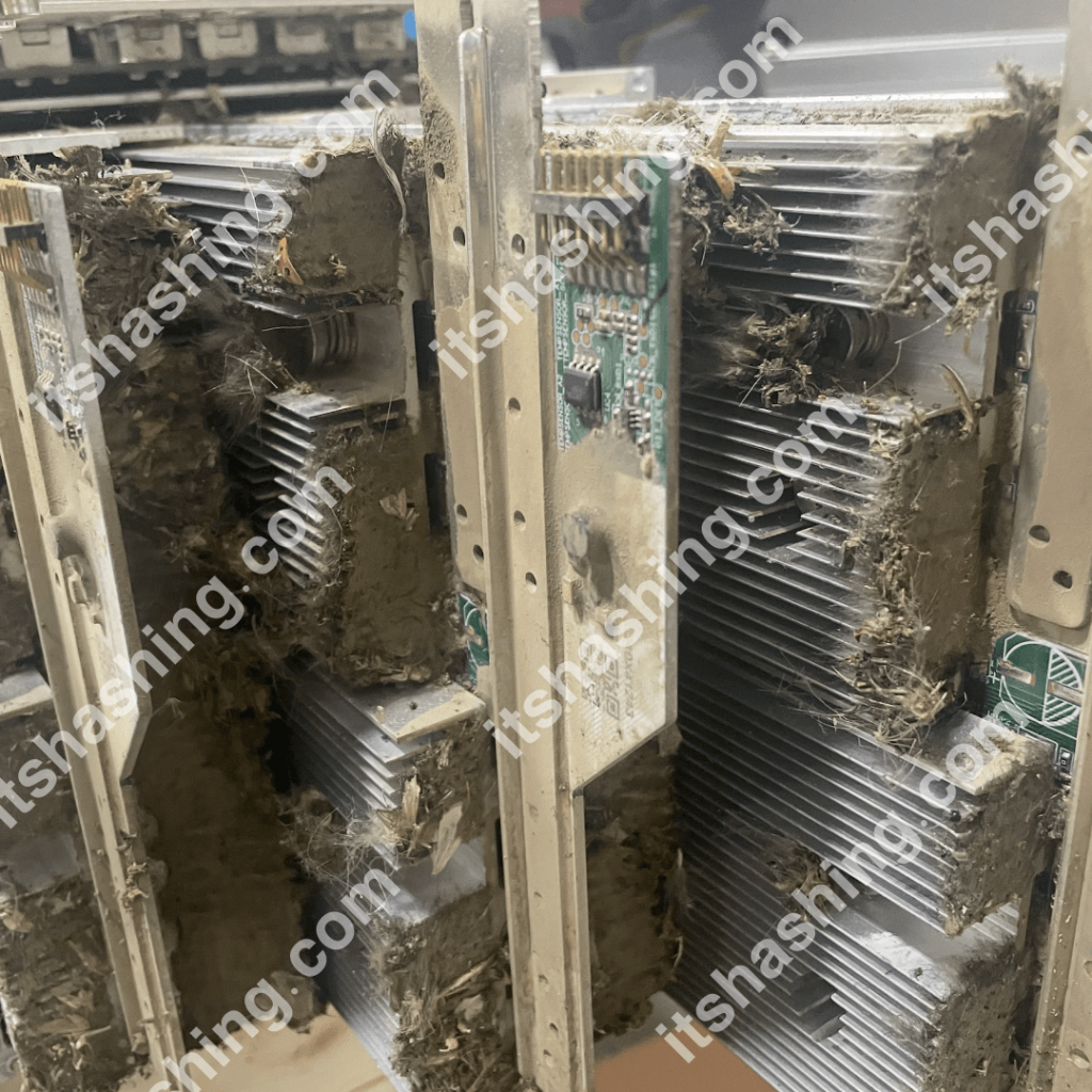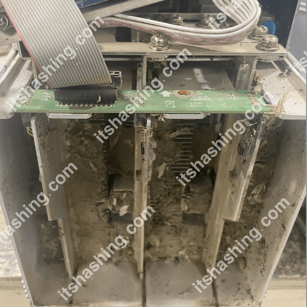 For instance, we’ve seen a Whatsminer M50 in a well-organized mining container still collect heavy dust and bugs, despite having intake and exhaust fans. This clogged airflow caused persistent M50 350 errors and related 360 errors, both tied to excessive heat.